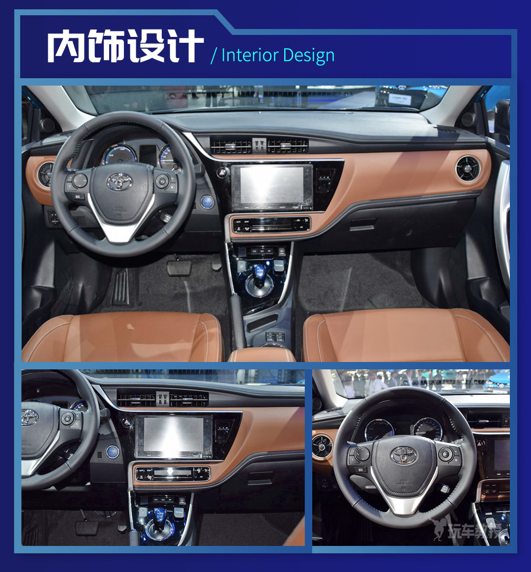 比起外观还有轻微的改变,卡罗拉/雷凌双擎E+的内饰设计的改变就真的微乎其微了,还是以简约家居风为主;偏向驾驶员一侧的中控设计,重复照顾到驾驶员。大面积的皮质包裹辅以镀铬装饰,质感不赖。