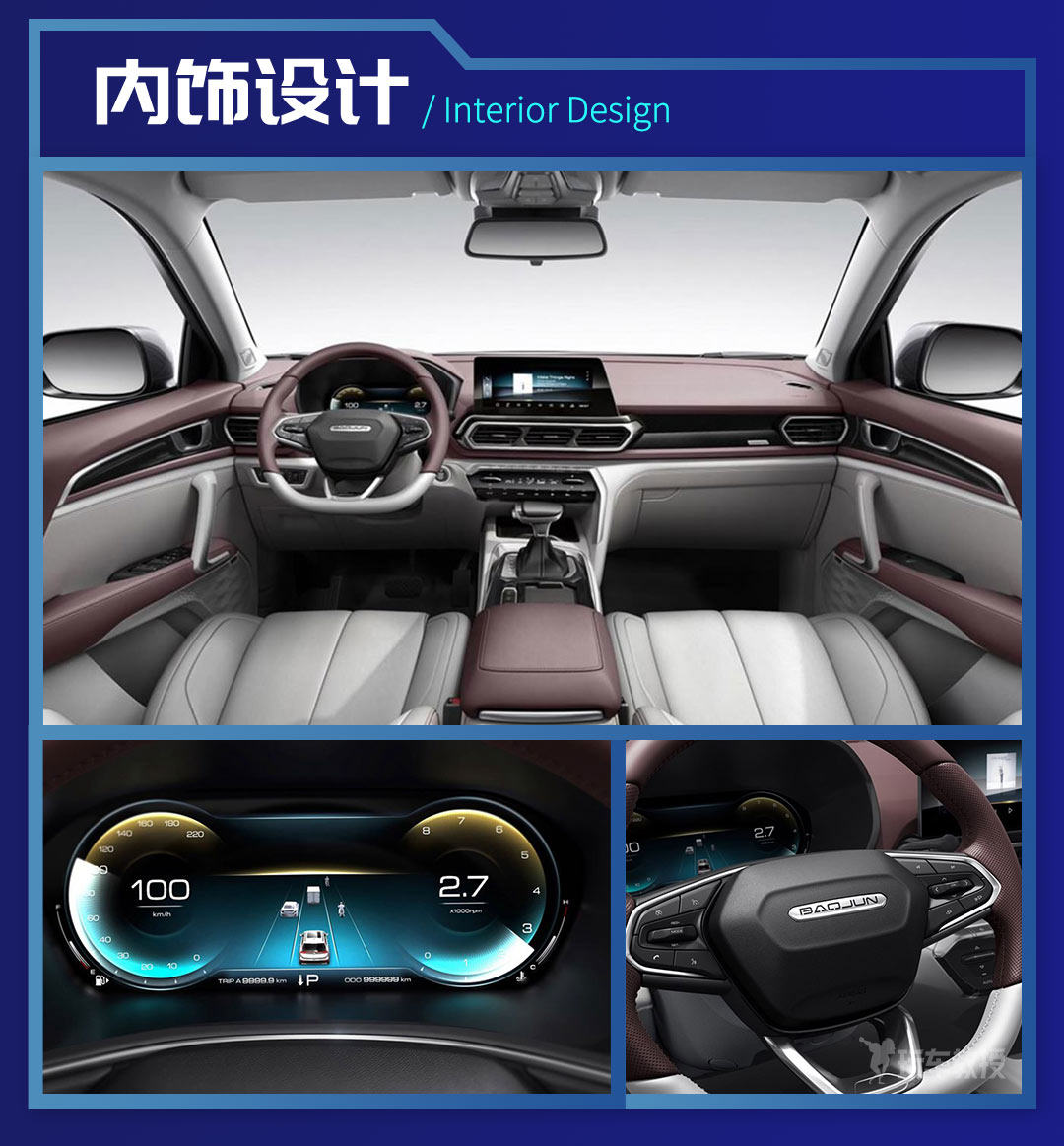 宝骏RS-5在这次亮相中并没有公布内饰。但是从之前的官图来看,宝骏RS-5的内饰设计比较居家。宝骏RS-5的中控屏采用悬浮式设计,空调出风口采用了用镀铬装饰包围,空调面板则使用了液晶显示。无论是设计还是用料,都是非常不错的。宝骏RS-5的方向盘LOGO从马头标换成了拼音“baojun”,这次应该能避免网友们的吐槽了。