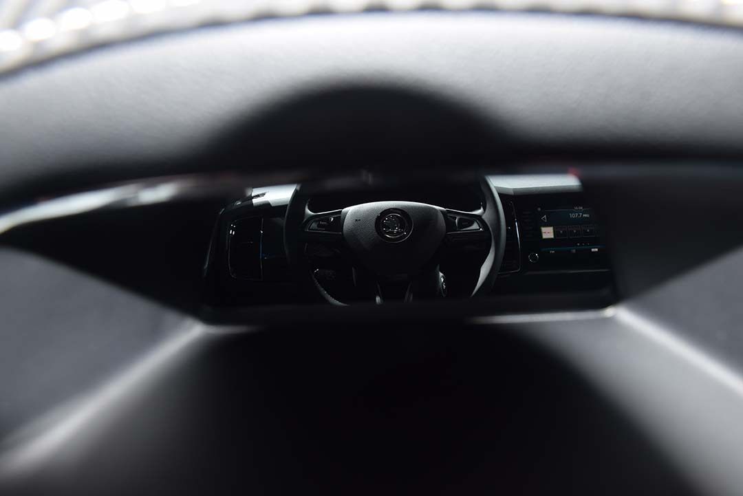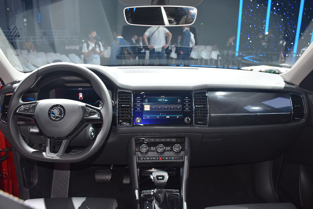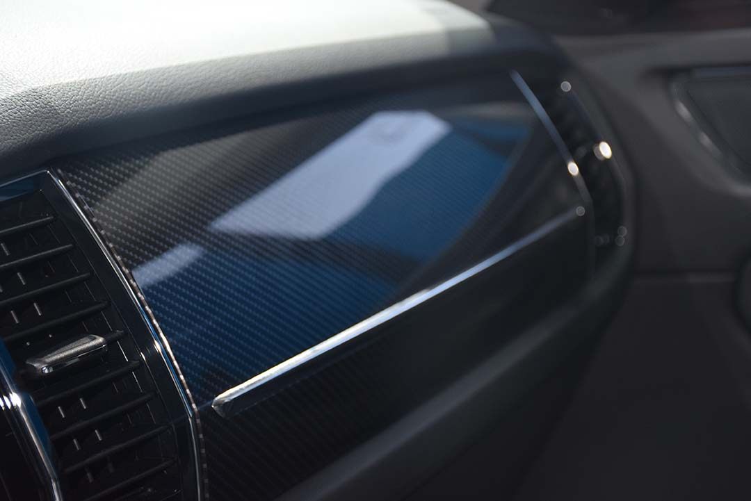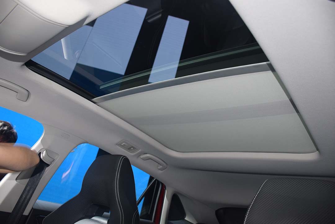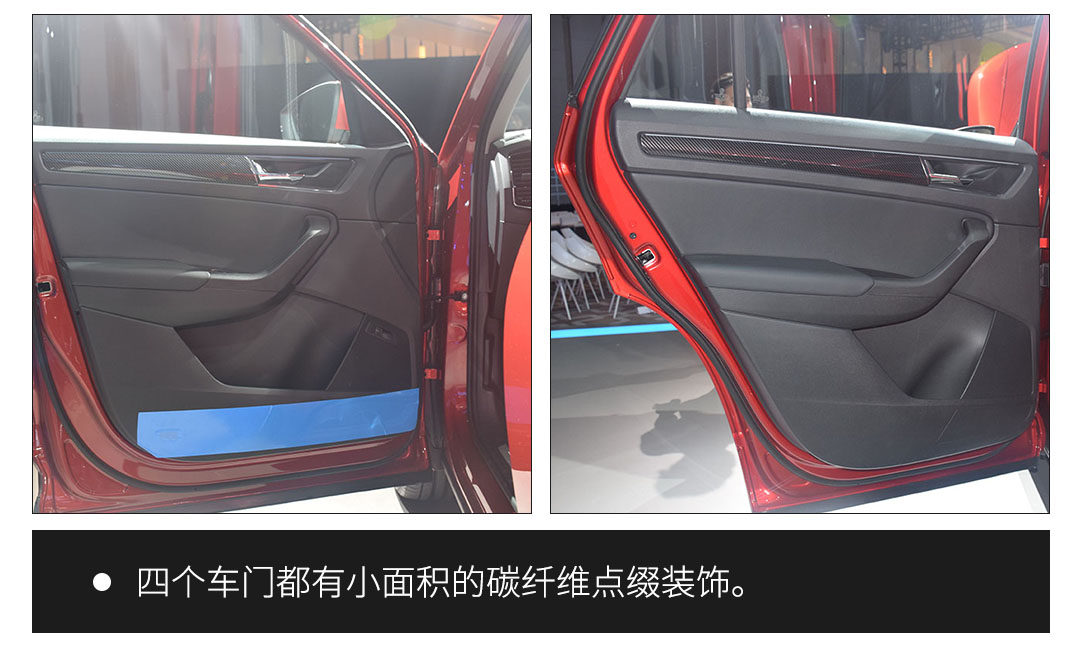 柯迪亚克GT在用料上值得点赞,除了中控台上方区域都是一些软性材质之外。中控台面板区域可以看到大量碳纤维材质的使用,质感体验上乘。同样,大尺寸全景天窗也值得点赞。