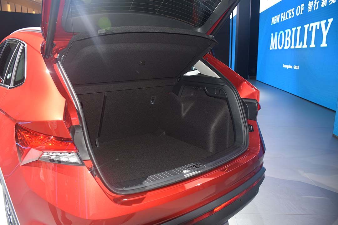 尾门则是掀背式设计,整体开口比较大,后备箱空间较为宽敞。只是,限于尾部溜背式设计,纵向空间有些小许影响,越往后越明显。不过,对于日常使用中,如果不是一些较大物体或行李箱的话,影响不大。