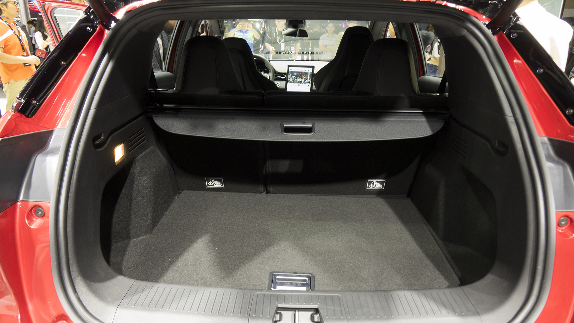 空间方面,176cm的体验者后排腿部还有一拳多一点的余量,而头部也有些空间,行李箱空间咋看之下是不怎么样,但当你拉开盖板之后就会发现另外一个储物格,整体来说表现是不错的,尤其是当你考虑到它是一款底部装了电池的纯电动车。