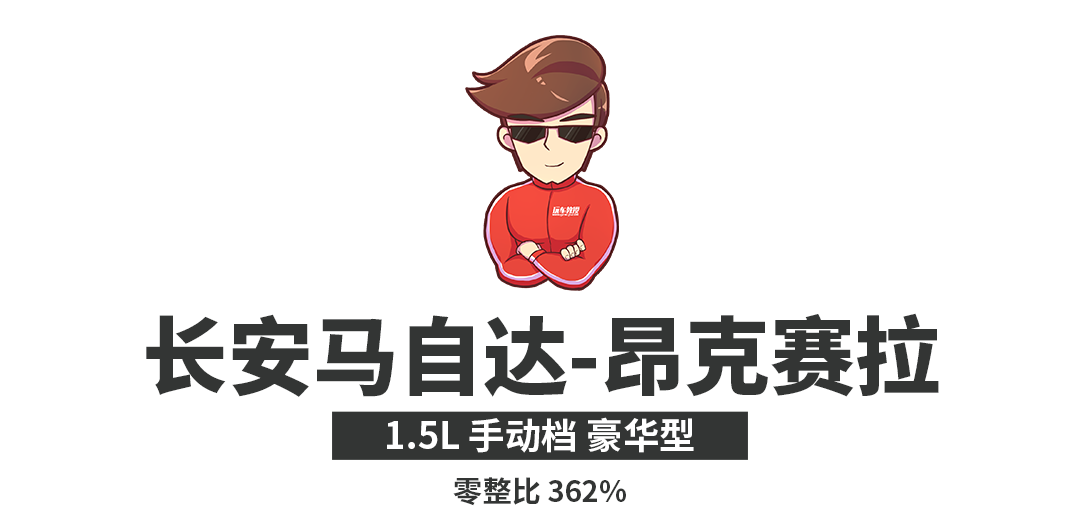 昂克赛拉的零整比为362%,在这个级别里算中等偏高的,不过昂克赛拉1.5L车型6万公里保养周期内,平均1万公里保养费用只有876元(含工时费),价格还是非常便宜的。