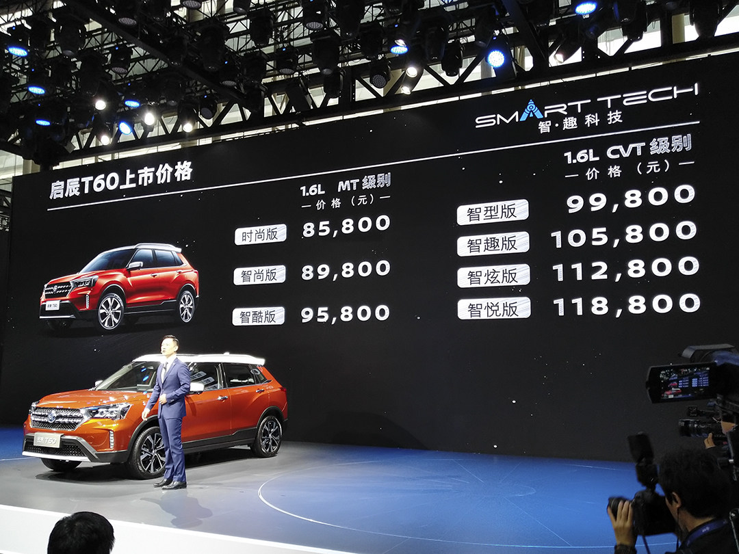 #东风启辰T60#在本次#2018广州车展#正式上市,正式售价为8.58-11.88万元。作为启辰品牌下一款全新的年轻化定位的SUV,T60一改往日启辰那种圆润的线条,转为硬朗、饱满的车身造型,给人以充满活力的视觉效果,犀利的造型与强大的技术背书将会是它吸引年轻人的重要卖点。