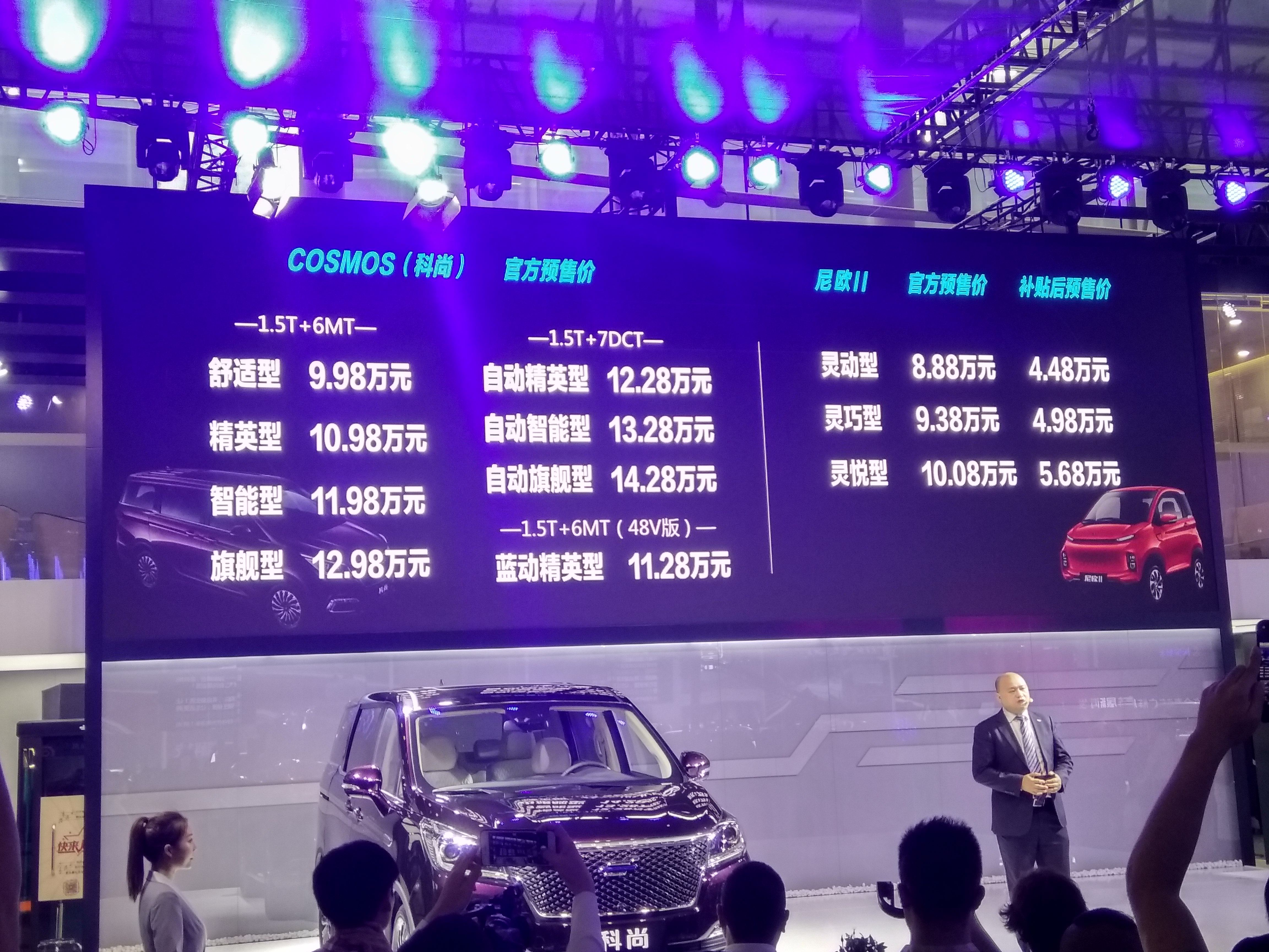 #广州车展#11月16号,#欧尚COSMOS(科尚)#正式亮相并发布预售价格,9.98-14.28万元。欧尚COSMOS(科尚)定位为自主品牌的中高端MPV,在外观上延续了欧尚汽车品牌家族化的设计理念,新车前脸采用了家族式的点阵式进气格栅设计,同时全新的欧尚品牌LGO也是非常醒目。内饰部分,采用的配色为上深下浅,反差较大的颜色营造的风格比较居家。动力方面,欧尚COSMOS(科尚)将搭载1.5T涡轮增压发动机或1.5T涡轮增压发动机+驱动电机的混合动力总成。欧尚COSMOS(科尚)的出现弥补了自主品牌在中高端MPV的缺失,也是给了消费者在MPV车型上更多的选择。另外,在本次发布会上长安欧尚全新A00级新能源车尼欧Ⅱ也公布了预售价,补贴后为4.48-5.68万元。