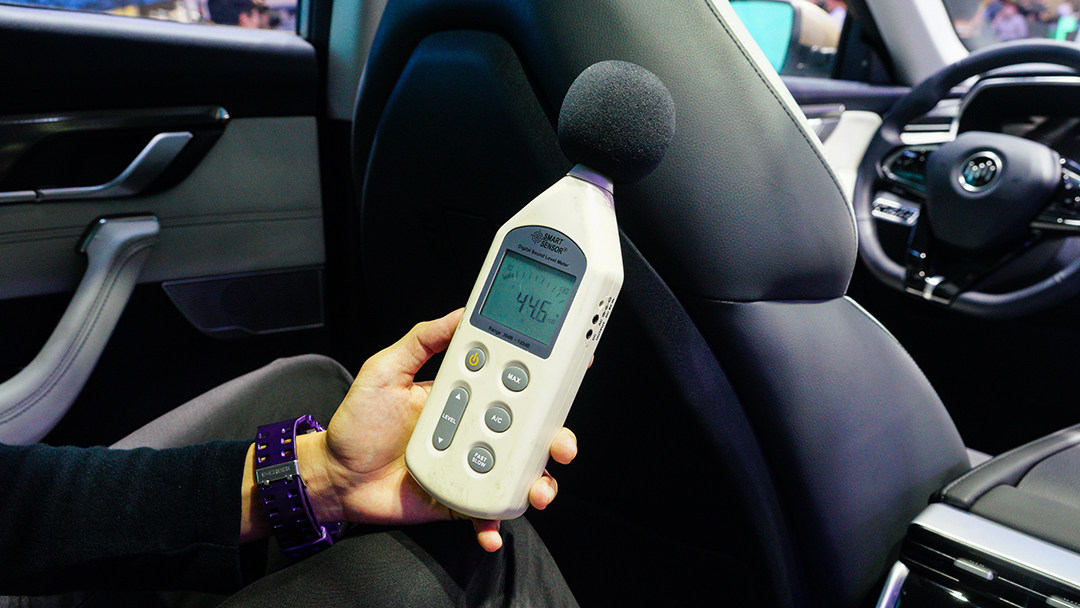 威马EX5闭门后车内噪声45.8db,哈弗H6则为52.3db,差距比较明显,主观感受方面,威马EX5稍胜一筹的舱内静谧性还是可感知的,至于振动抑制就得开到路面才有答案,在此不作过多主观叙述。