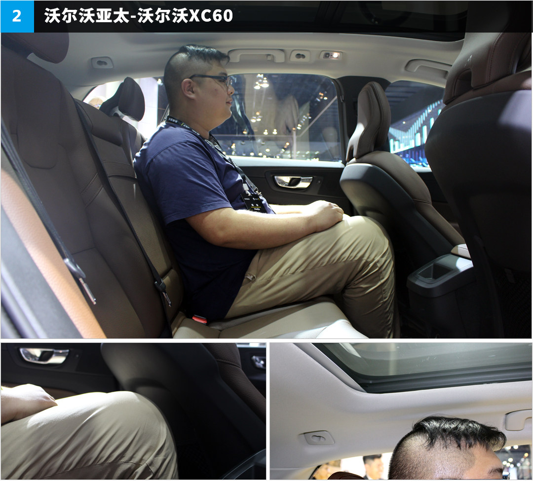 大浩调整好前排座椅后,进入后排发现XC60的头部空间表现很不错,余量较多。而且坐垫的高度也足够高,腿部空间有一些余量,所以乘坐舒适性不错!