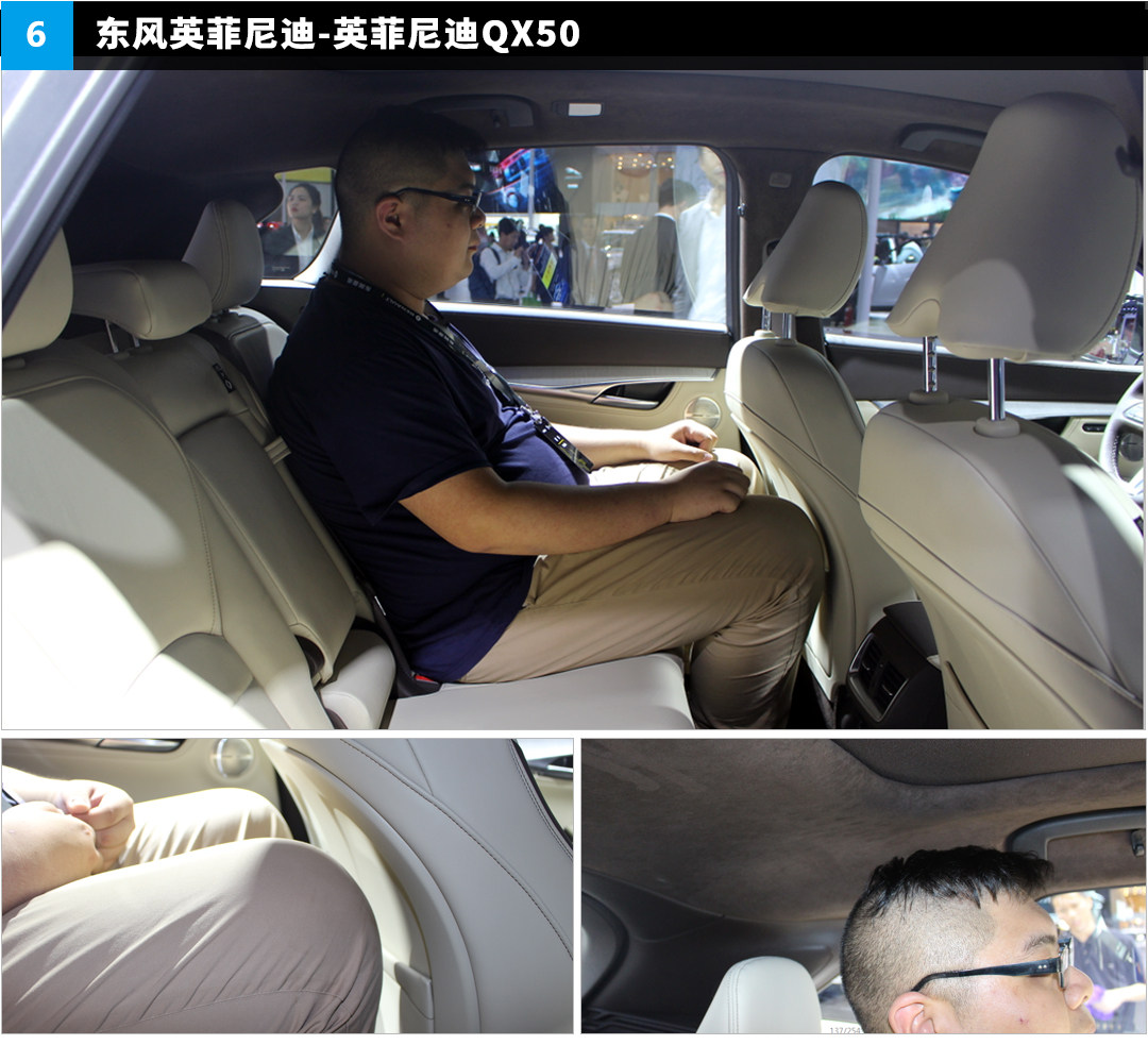测试每款车型的空间前大浩都会在前排调整出最合适的坐姿,然后进入到后排测试每款车型的后排空间,由于他的体型相当健硕,所以编者认为如果各款车型的后排能把他装载进去的话,那么这款车型对于国内95%以上的消费者都是很够用的!