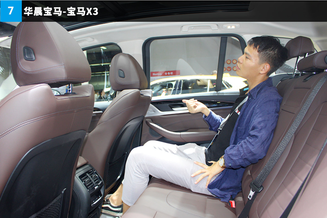 身高192cm的大浩表示宝马X3的头部空间很足够,而且后排座椅的包裹感是比较突出的,腿部空间有一定余量,看来不进行加长的轴距对于国内大部分乘客来说都是很够用的!