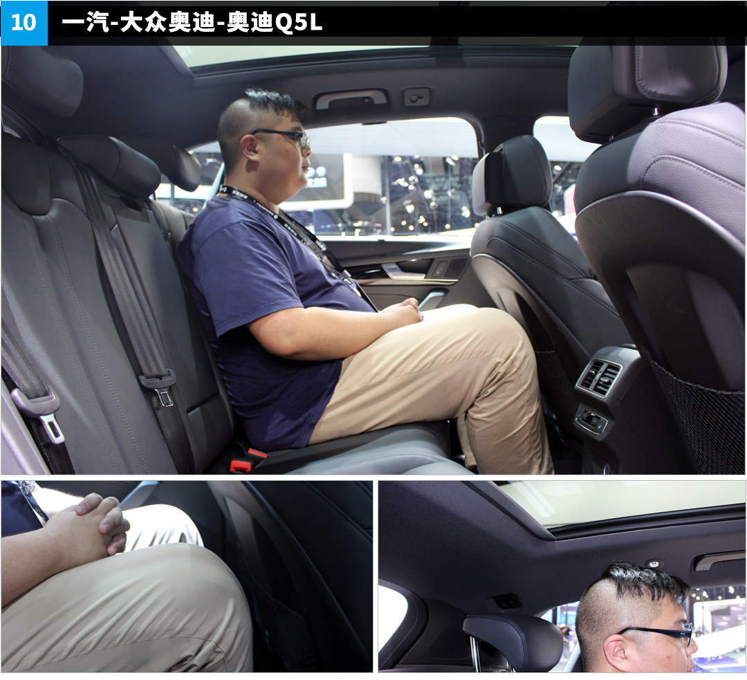 大浩表示奥迪Q5L的空间表现也有惊喜,它的腿部空间表现仅次于奔驰GLC L!大浩能得到约1拳的腿部空间,头部空间也接近一拳了。