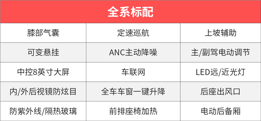 全系标配多项基础和高度安全、高科技、实用性、潮流化配置。
