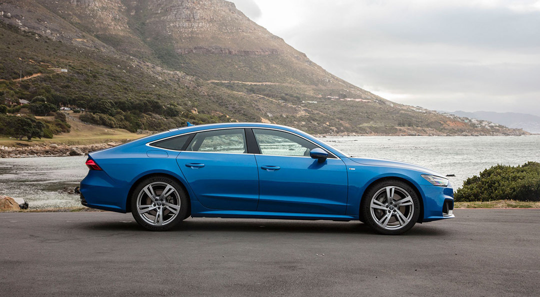 侧面是奥迪A7设计的精髓所在,一条流畅的弧线从A柱延伸至车尾,塑造出A7优美的溜背轮廓,三条锐利的腰线以及车门下方的折线赋予了A7立体感十足的侧面。无框式车门是奥迪A7的标准配置,彰显其轿跑的属性。