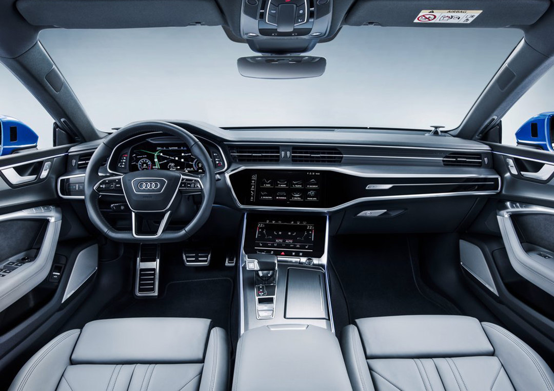 全新A7的内饰可谓有着质的飞跃,整体设计源于全新一代奥迪A8,与A8一样,展现出满满的科技感。三屏设计大幅度减少了车内实体按键的数量,刚劲有力的银色饰条勾勒出各区域的主要轮廓,让整个内饰看起来简约且富有层次感。