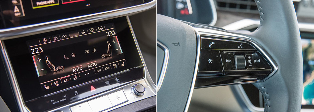 一块触控式液晶显示屏就是空调控制区的全部,虽然中控的双屏均有反馈力提醒驾驶员是否操作成功,但无法给驾驶员提供盲操的可能;虽然中控双屏设计科技感满满,但是指纹收集器这一“美名”也是妥妥的。虽然车内实体按键的减少加大了盲操的难度,或许奥迪官方更多地是希望驾驶者使用其语音控制系统,值得一提的是,经过国内外媒体的测试,全新A7的语音控制系统识别准确性十分高,或许这是奥迪敢于大幅减少实体按键的底气。