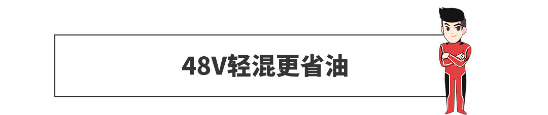 与一般混动系统有所区别,这套48V轻混系统更偏向于辅助发动机工作,在需要时助力发动机或在发动机熄火后维持各个部件的短时间电力供应以达到降低油耗的目的。其具体表现体现于发动机自动启停功能运作时,这套系统可在高速巡航下允许发动机关闭并提供最高40秒的滑行时间。此外,当车速在22km/h之内,系统可根据电力以及交通状况激活发动机自动启停,而非像传统自动启停一样,需要车辆完全静止时才启动。这套系统的加入,官方指实际驾驶情况下每百公里可节省0.7L燃油,虽然数据并不突出,但这套系统作为标配,总比没有要强。