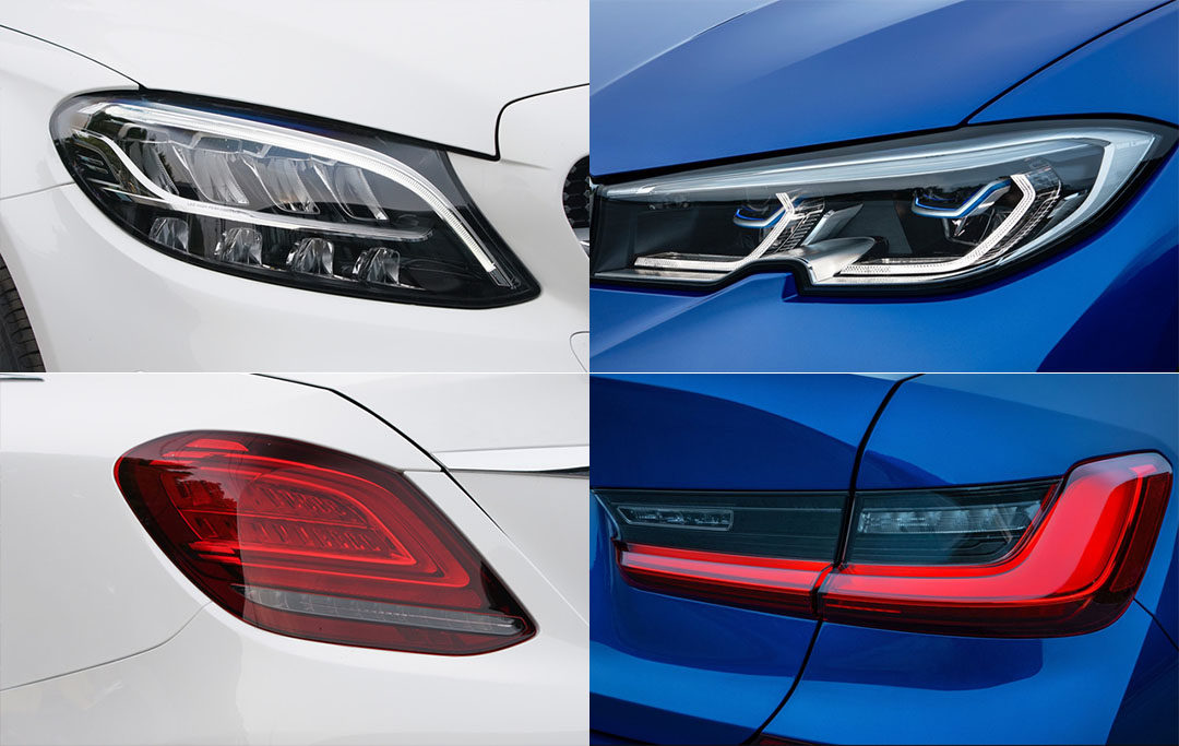 对于两款车型的大灯设计,可以说都是赏心悦目的,但风格也是有所不同,奔驰C级则讲究圆润优雅,宝马3系则讲究凌厉运动。