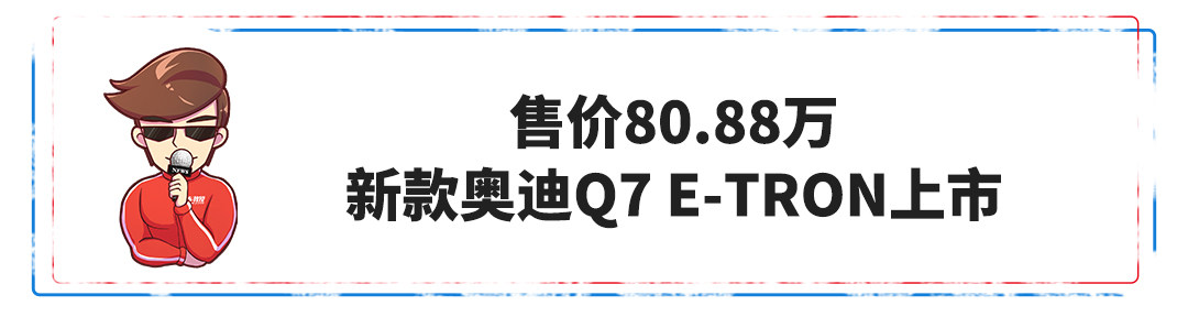日前,新款奥迪Q7 e-tron正式上市,官方指导价为80.88万。新车型相比旧款车型指导价下降了6.62万,并且增配了座椅加热、豪华内饰氛围灯、负离子发生器。动力方面,搭载了由2.0T发动机、锂电池组以及集成电动机的8AT、quattro全时系统等构成的插电式混动系统。续航方面,纯电动续航达到了56公里,总续航里程能够达到1070km,在快充模式下满充电仅需要2.5小时。作为奥迪在华的SUV旗舰,其展现了其高超的技术水平,油耗以及动力表现优秀。