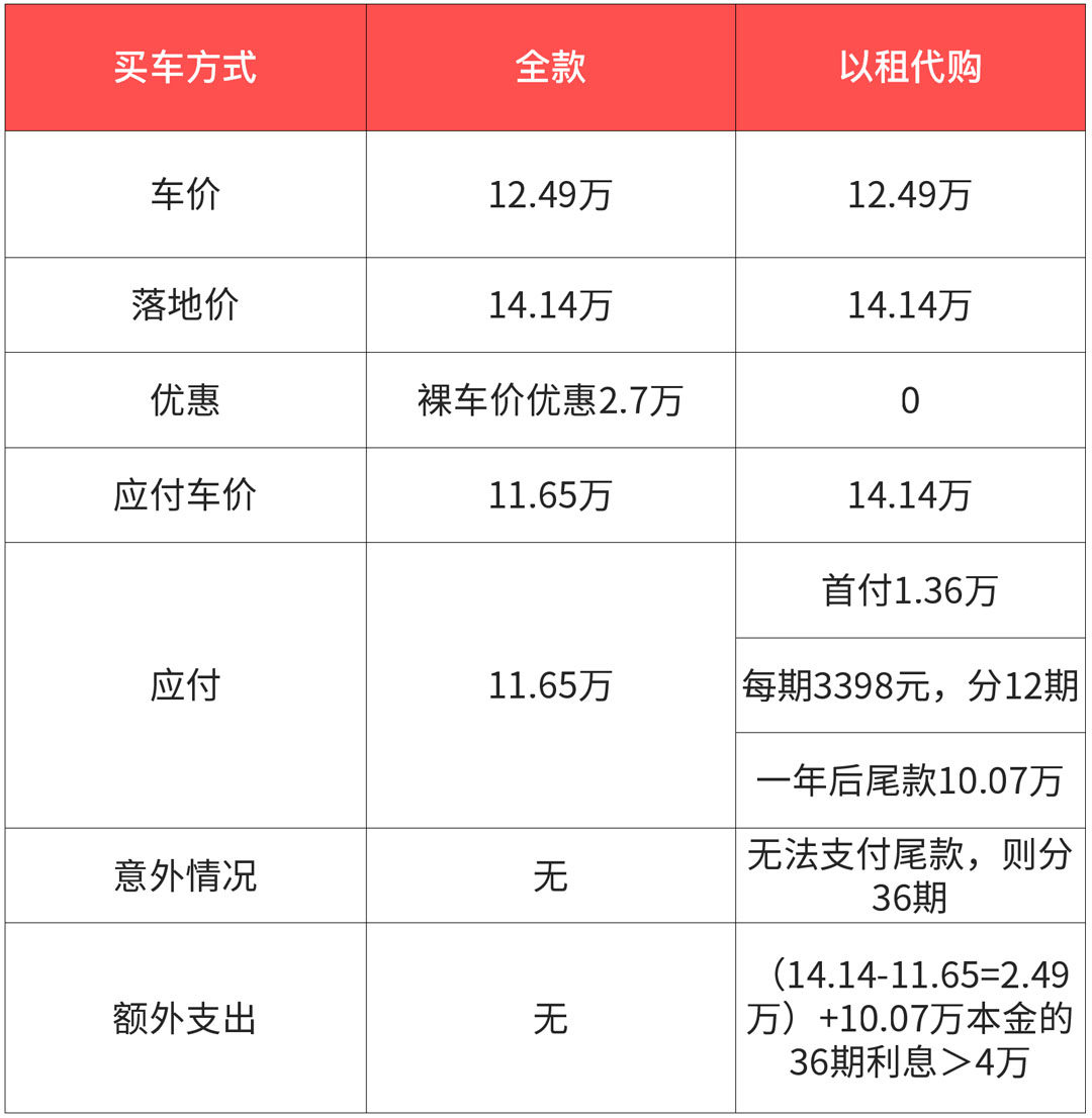 我们来看一下所谓的一成首付是不是真的这么划算,拿17款朗逸自动舒适版举个例子,弹个车上首付1.36万,12期每期3398元。一年后还尾款10.07万,也就是总价约等于14.14万。我们再来看一下4S店买车花多少钱,指导价12.49万,现金优惠2.7万(广州地区),各种花费下来不过12万左右。也就是说一年后如果你能付得起尾款,多花了2万,如果不能付尾款,可以选择分36期,这个时候利息更贵了,多花2万左右。等这辆车写上你的名字的时候,你已经多花了4万了,是在是不值。
