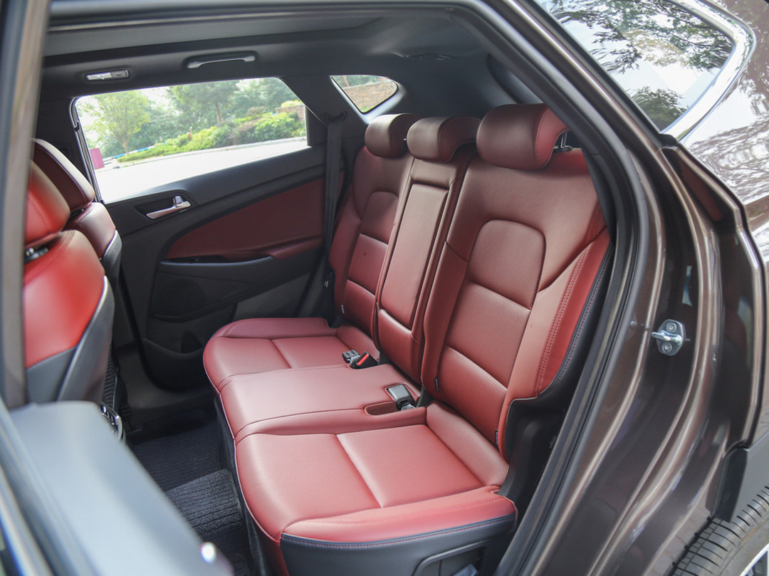 与现款相比,全新途胜的车身长度增长了70mm,其它尺寸并没有改变,在竞品对手全民加长的时代,自是没有什么优势可言。但尺寸归尺寸,真实表现往往又是另外一回事。实测175cm的体验者调整好前排坐姿,来到后排,还剩余2拳腿部空间,头部空间为1拳2指,表现十分不错。除了三个独立头枕、空调出风口等常规配置,后排靠背还支持四挡调节,该配置在同级并不常见,对于提升乘员舒适性有极大帮助。美中不足的是中央地板隆起稍微有点明显,对中间乘客的照顾不是很好。