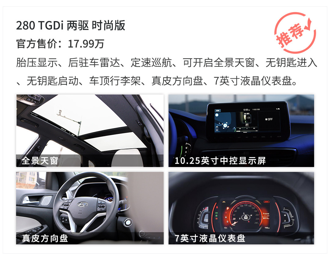 所以,教授还是乐意推荐售价17.99万的车型。值得一体的是,17.99万的售价车型共有三款,这三款车型配置上有何区别呢?经过教授一番研究,发现,这三个版本车型售价一样,但是各自的配置有所不同,进行了差异化的处理。比如推荐的两驱时尚型,其相应的配置多注重于实用舒适性,全景天窗、LED前大灯、定速巡航,这些功能配置最为实用;而智联版本的车型,则是注重于车机系统上的智联功能,除此之外,还有副驾驶席座椅电动8向调节和前排座椅加热功能;而豪华版本车型的话则是注重安全性配置多点,有着全方位的主动安全系统,比如LDWS 车道偏离警示系统等。要是让教授选的话,我会比较乐意选择豪华版这款,尽管没有过多的舒适配置和智联系统,但安全保障多。如何选择,就要看各自的不同需求了。