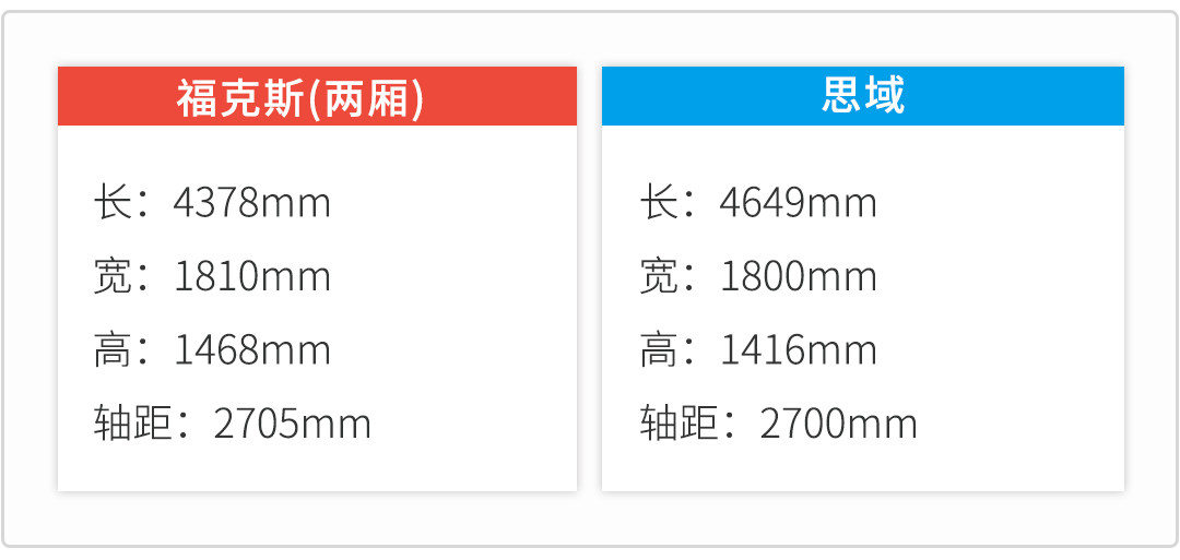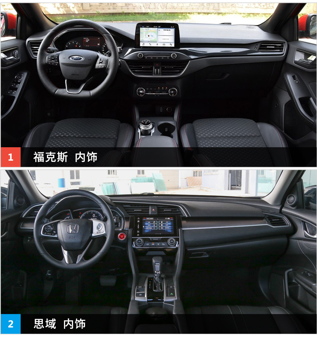 两车的轴距只相差5mm,车宽只差10mm,差异不大,而两厢车和三厢车的车长对比没意义。但思域更矮的车身高度使其更接地气,毕竟一低遮百丑。乘坐空间的表现,思域略占优势,但至于后备厢方面,无论是容积还是灵活性,福克斯两厢都有一定优势。