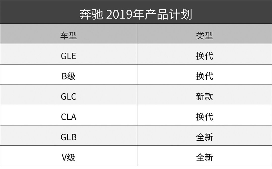 CLS、A-Class、B-Class、品牌首款纯电SUV EQC 等,奔驰的2018年让人意犹未尽。而在2019年,新一代 CLA、新一代GLE、GLB等新车也将登场,可以说是相当精彩。