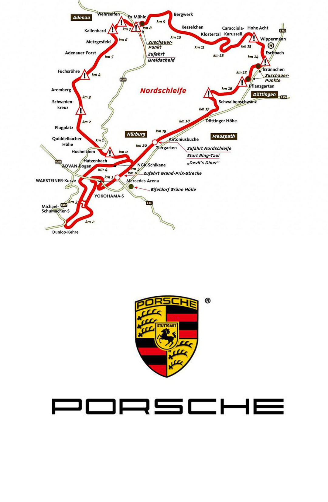 纽博格林赛道(Nürburgring)于1927年竣工,是目前全球少数拥有历史地位及技术难度的经典赛车跑道。它的北环赛道全长为22.8公里(1981-1984年重新修建后为20.8公里),众多的转弯、坡道和起伏的山丘使它成为最好最全面测验跑车性能的场所。