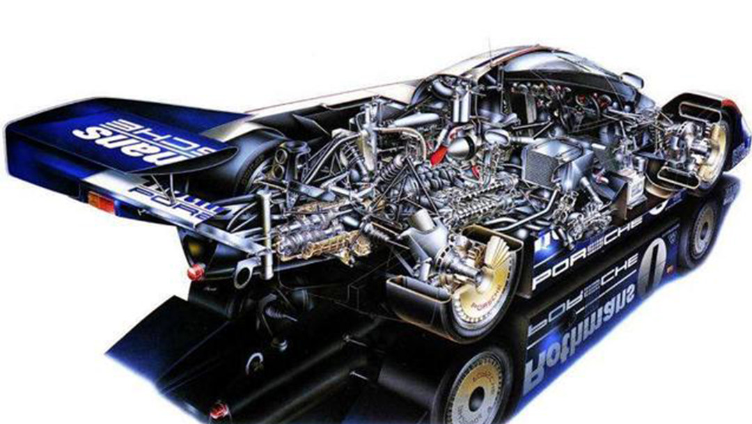 而普通的勒芒Group C赛车用的是一颗来自一副专为Indycar赛车而设的2,650cc水平对置六缸双涡轮增压引擎,动力输出在635马力左右。当时保时捷还热衷于风冷,但风冷的效果对于赛车来说并不全面,所以保时捷就发明了一套独特的冷却系统,就是采用风冷的中缸同时配合上水冷式缸盖。