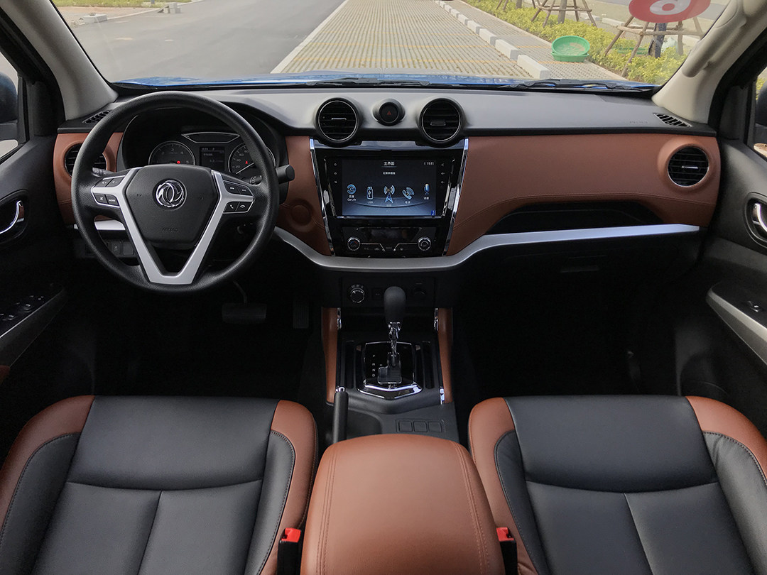 内饰没有因为皮卡的身份而固守尘封,橙黑的双色搭配以及别致的圆形出风口倒是让车厢透出不错的年轻时尚感。挡把两侧以及副驾手套箱上方均设计了置物凹槽,对于用户日常使用习惯的考虑足够周到。