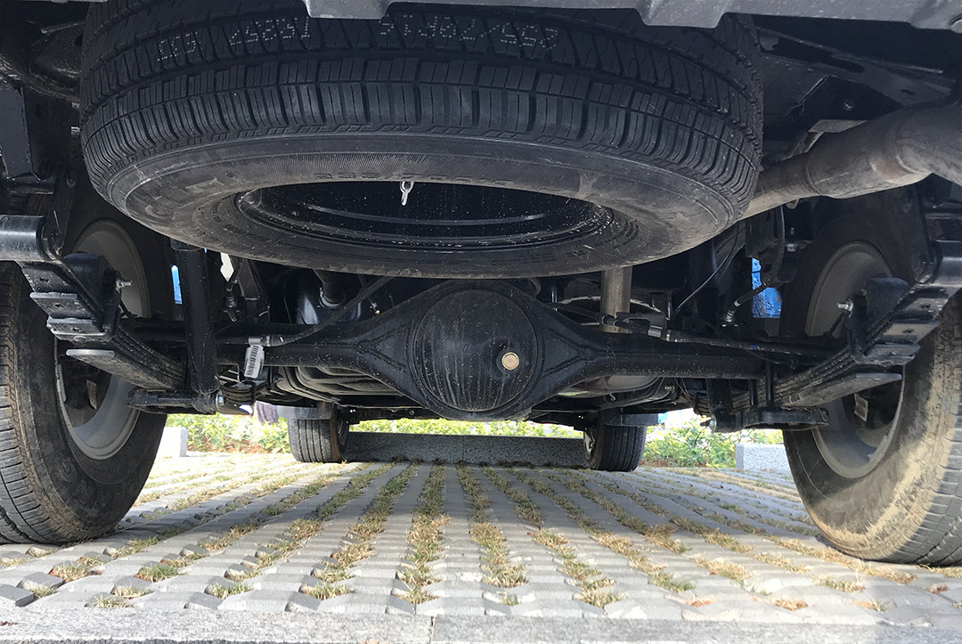 为了满足载荷需求,前双叉臂式、后钢板弹簧式悬架是皮卡常见的底盘悬架形式。虽然硬件结构让人对其乘坐舒适性不会有太多期待,但由于采用了扁平率高达70的宽轮胎,加之填充柔软厚实的沙发,实际行驶时大部分细碎震动被隔绝缓冲,就算保持50km/h的速度冲过减速带,也没有露馅,车内人员不会感到太生硬的振动感。应该说锐骐6的底盘在实用性与舒适性之间都做了一个比较好的平衡。