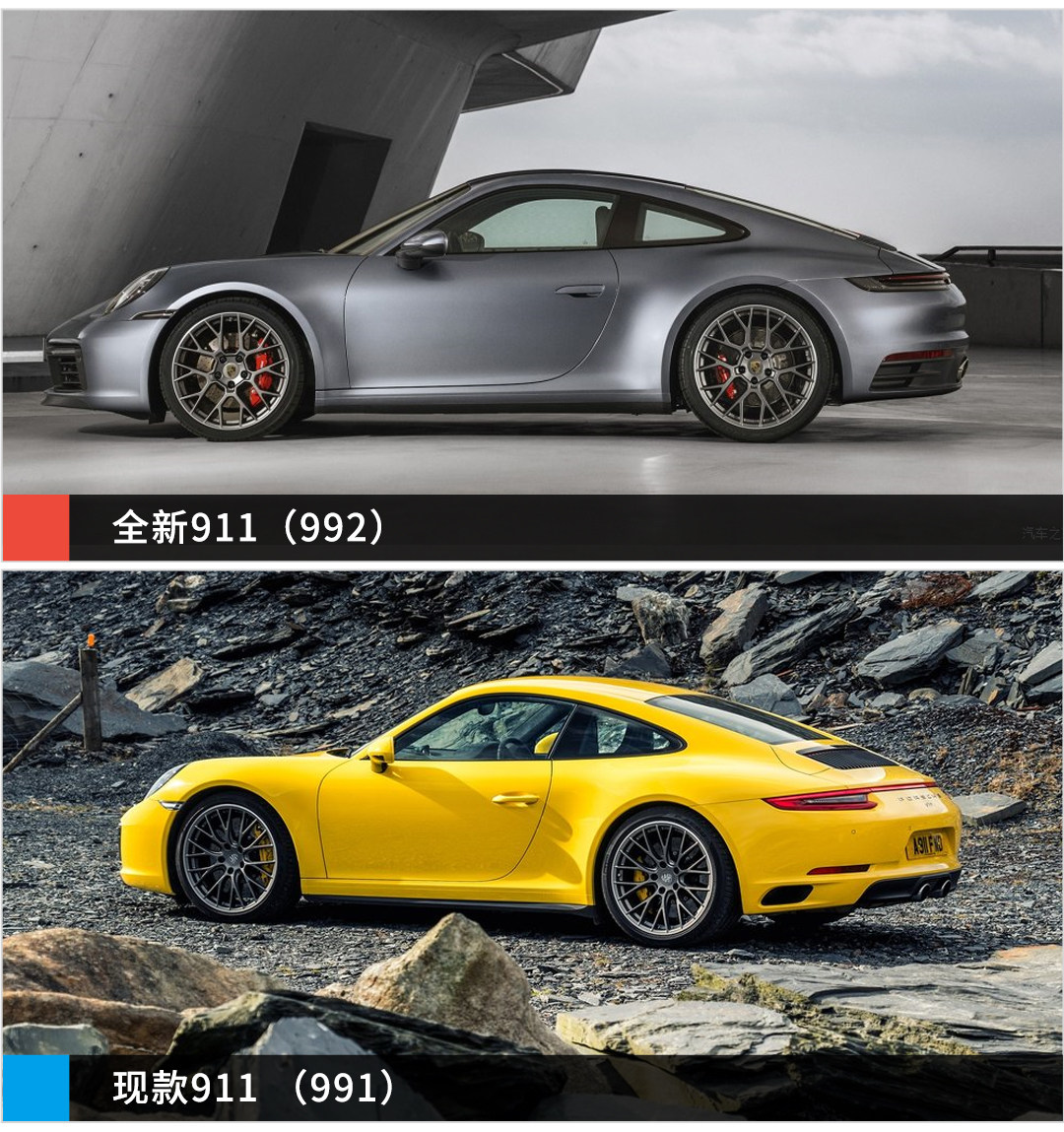 全新一代保时捷911依然采用从水冷时代后三代车型(996/997/991)经典的车身造型,双椭圆大灯、后轮突出的轮拱,快速下滑的车顶线条,这些元素都让人一眼看出这是一辆保时捷911,问题则是第几代911而已,这答案或许只有骨灰级保时捷粉丝才能告诉你。