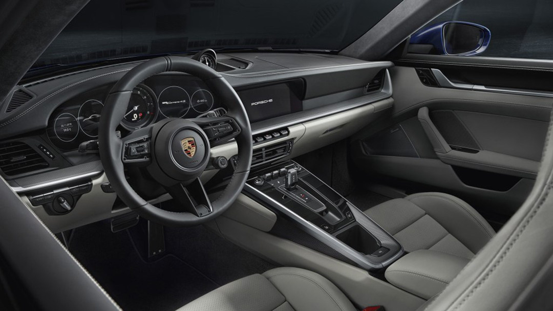 内饰部分采用全新设计,科技感增强不少,甚至让你怀疑这是一辆Panamera而非911这样的纯粹跑车,但它依然保持了经典元素的传承,例如基本液晶化的五连表式仪表盘、旋转式一键启动等等。突出时代进步的,就莫过于电子挡把以及保时捷通讯管理系统(PCM)的10.9英寸触摸屏,内置了保时捷智慧互联模块升级版,可以实现如今主流的车载互联功能。