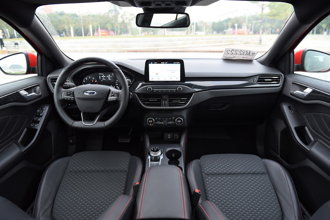 内饰方面,自使用MQB平台开始,高尔夫的内饰稍微潮流了一点,不过依旧是平庸,一切布置得整整齐齐,有棱有角,但没有凸显出有多大的进步,相反在R-Line车型上座椅方面在侧围却使用磨砂材质,方向盘也使用上GTI的样式,看起来很不错,但自动挡R-Line车型的指导价高达17.29万元,而福克斯顶配ST Line指导价只要15.08万,性价比比较高。