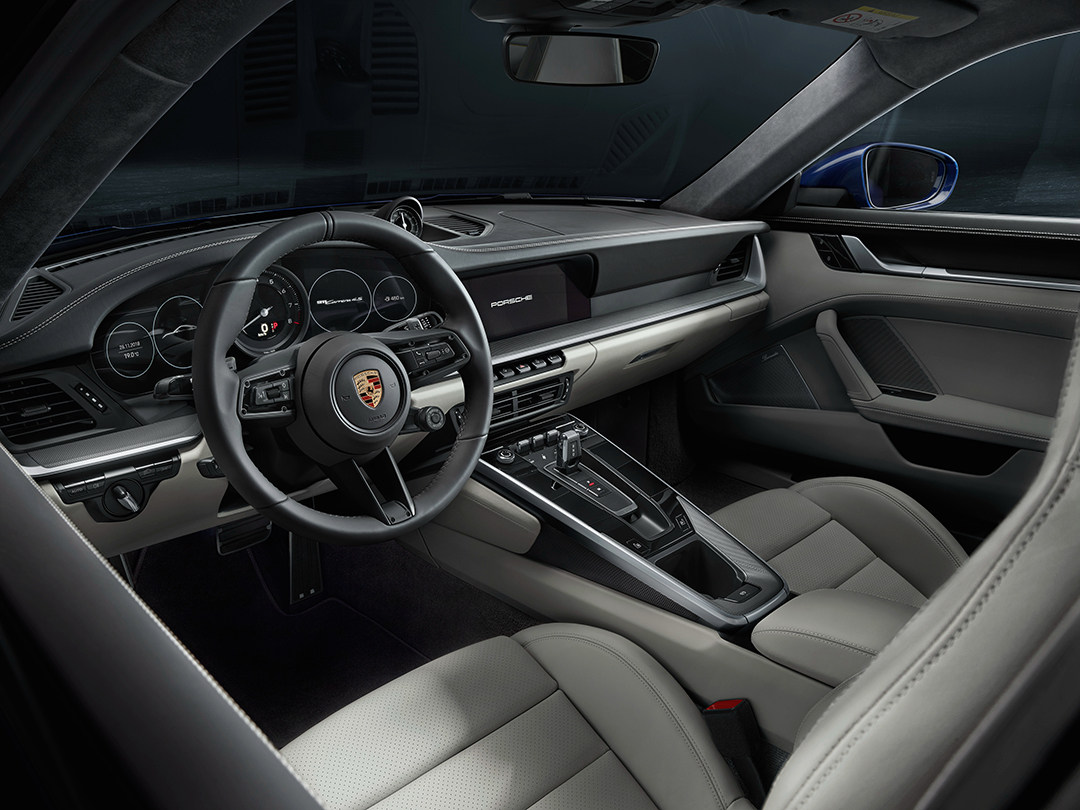 打开车门,911的经典中控布局还在那里,只是大尺寸中央显示屏和液晶化程度进一步提升的五联装仪表盘让这个经典内饰增添了更多的科技感。