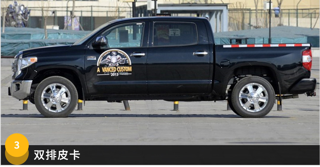 这个级别的皮卡也是美帝人民最喜爱的皮卡。对于一般的家庭来说,紧凑型和中型皮卡有点太小,再往上的重型皮卡,又有点过头,介于他们之间的半吨级全尺寸皮卡就刚刚好,空间大,动力强,拖个四五吨的拖车也没问题,家庭使用刚刚好。而在中国,如不拖挂250kg以上的拖车,C1和C2驾照也可以驾驶这类皮卡。