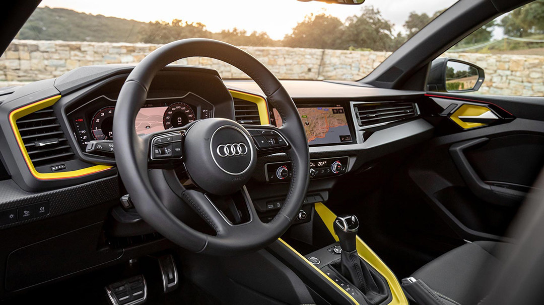全新A1的内饰变化同样是明显的,可选与车身同色的饰条让整个车厢年轻了不少,偏向驾驶者的中控台设计,可看出新车更强调以驾驶员为中心的理念。可选配的10.25英寸全液晶仪表盘加上10.1英寸的触摸式中控屏让A1的内饰不缺科技感。
