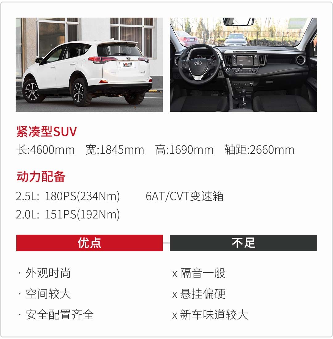 自1994年问世以来,丰田RAV4就成为公认的城市跨界SUV鼻祖。个性的形象、灵活的操控、优异的品质让它迅速风靡世界,并且取得了非常不错的销量。2006年广州车展,丰田RAV4正式以进口身份进入中国,三年后RAV4由一汽丰田引入国产。得益于丰田优秀的品质,RAV4的销量也能一直位居合资SUV榜单前列。而如今新一代RAV4的到来,很多人也开始期待它在国内的上市。那么,现如今这个价位,又有哪些选择呢?