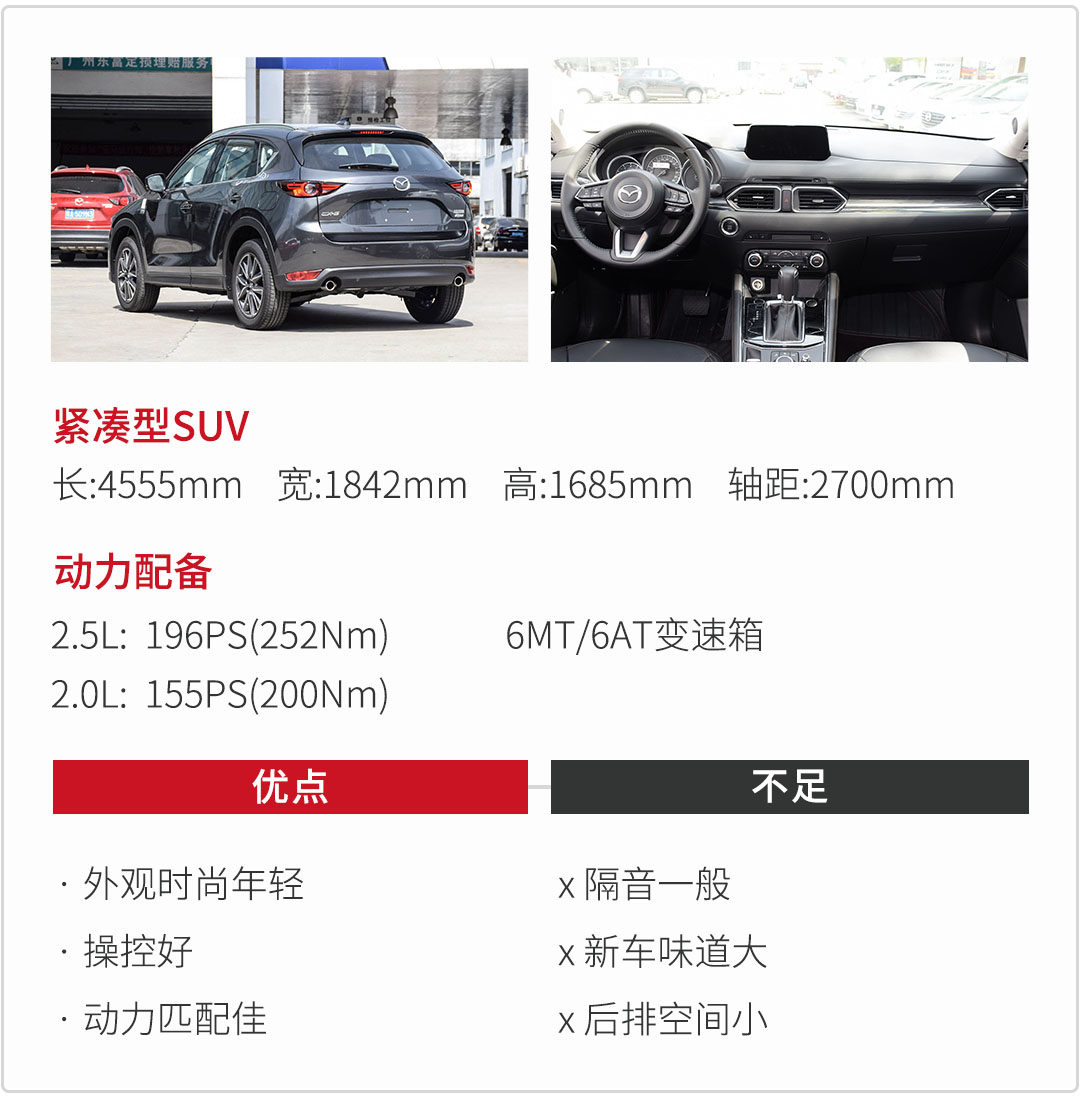 目前马自达在国内的在售车型比较少,也是阻碍马自达全面发展的一个重要原因。而在SUV车型里面,CX-5可是说算是比较适合家用的车。在外形上比起以上的几款车型来说是出色不少,马自达的魂动设计理念足以让旗下的车型都能够保持较高的颜值。