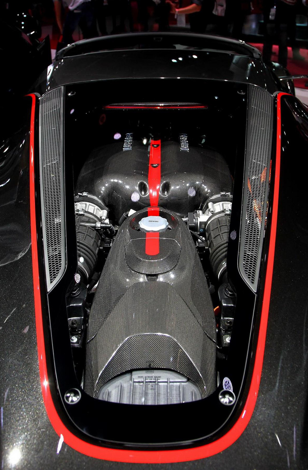 结果V12引擎加上HY-KERS系统得出以下两条动力公式:最大马力=V12NA在9000rpm时爆发800Ps马力+来自KERS的163PS、峰值扭矩=V12NA引擎在6750rpm时爆发700N·m扭矩+来自KERS的200N·m扭矩。同时为了电机时刻都在工作状态,HY-KERS拥有非常高超的能量回收系统。简单点来说,HY-KERS系统是从F1赛车上嫁接过来的,它的存在就是为了补偿自吸内燃机的缺点,让其动力输出变得完美无暇!