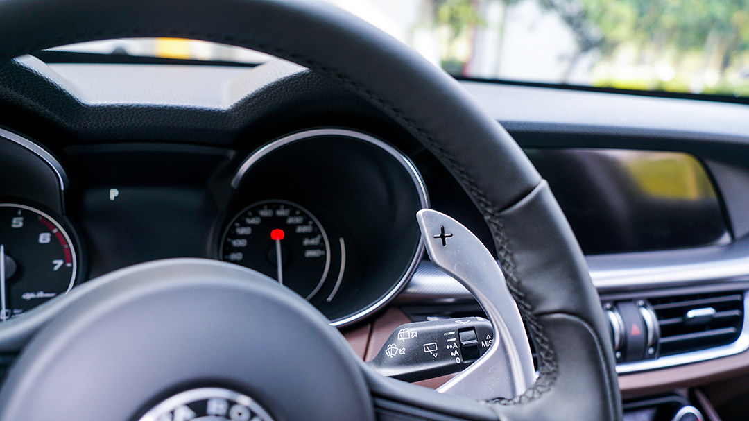 内饰部分,所有有关驾驶的东西,都会给人眼前一亮的感觉,与法拉利一样,点火按钮集成在方向盘、硕大的固定式换挡拨片,地板式油门,以及手感不错的方向盘手感,即使是静态时坐进车厢之内,都能感受到阿尔法·罗密欧在上个世纪对于速度的疯狂迷恋,在车厢内的运动感营造上,Stelvio有着自己的一套。但作为一款SUV,它的坐姿无法与Giulia一样可以坐得比较躺。