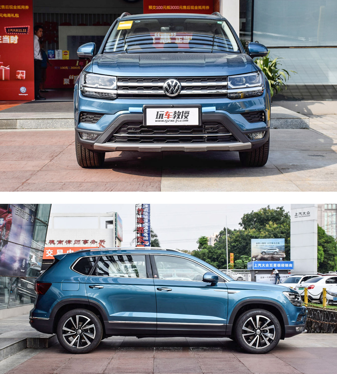 途岳的的外观设计与途昂有些相似,大灯与进气格栅的衔接加上双横线格栅装饰设计,让途岳的造型显得十分硬朗并且充满力量感,前脸造型与途昂基本一致,只是尺寸上要小了一圈,所以自亮相后就被大家戏称为“小途昂”。
