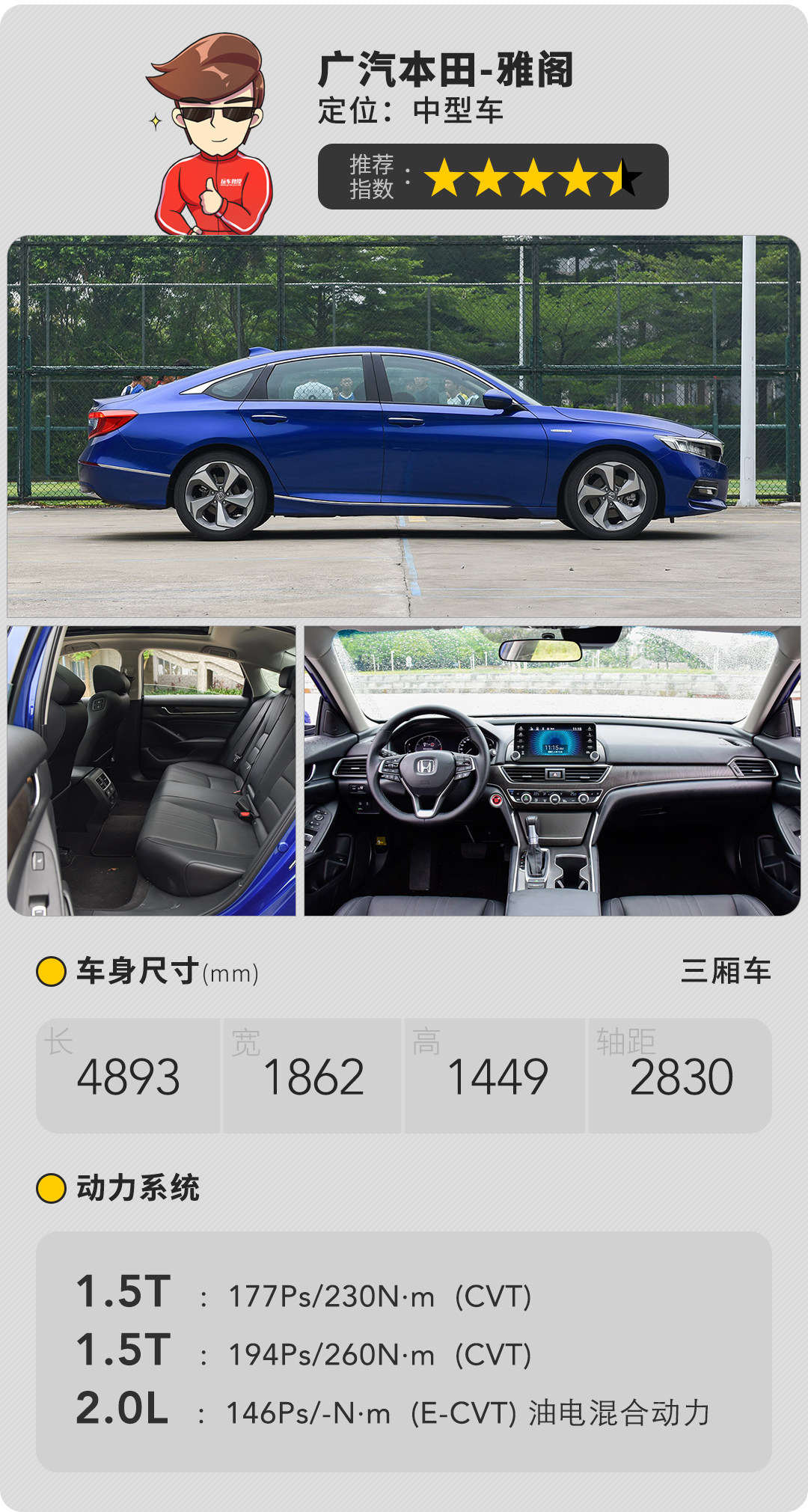 动力方面,雅阁燃油版车型均搭载了1.5T发动机,最大功率194Ps,并且匹配CVT无级变速箱,而混动车型则是搭载2.0L发动机+E-CVT组成的混合动力系统。这一代雅阁最大的亮点在于混动版车型搭载了第三代i-MMD混动系统,动力提升与油耗降低都让其备受瞩目,相较之下燃油版车型的动力表现平平,很多人甚至吐槽燃油版与混动版是两款车型。