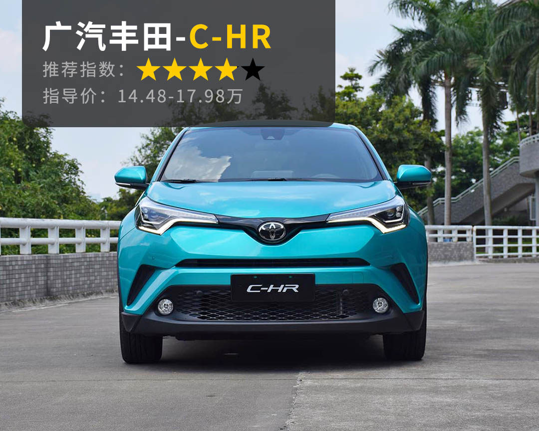 推荐理由:C-HR是今年丰田推出的一款小型精致SUV车型,同样也与一汽丰田的奕泽组成双子星车型。利用较为复杂的线条对外观进行勾勒,专为年轻消费群体打造的一款SUV车型。基于TNGA架构之下,C-HR不同丰田往日的驾驶风格。超过40%热效率的2.0L自然吸气发动机,动力性能及油耗经济能够很好的兼顾到。能够模拟十个挡位的CVT变速箱,驾驶平顺性更是值得点赞。加上丰田往日的品牌口碑基础,C-HR受到了年轻消费群体的喜爱。