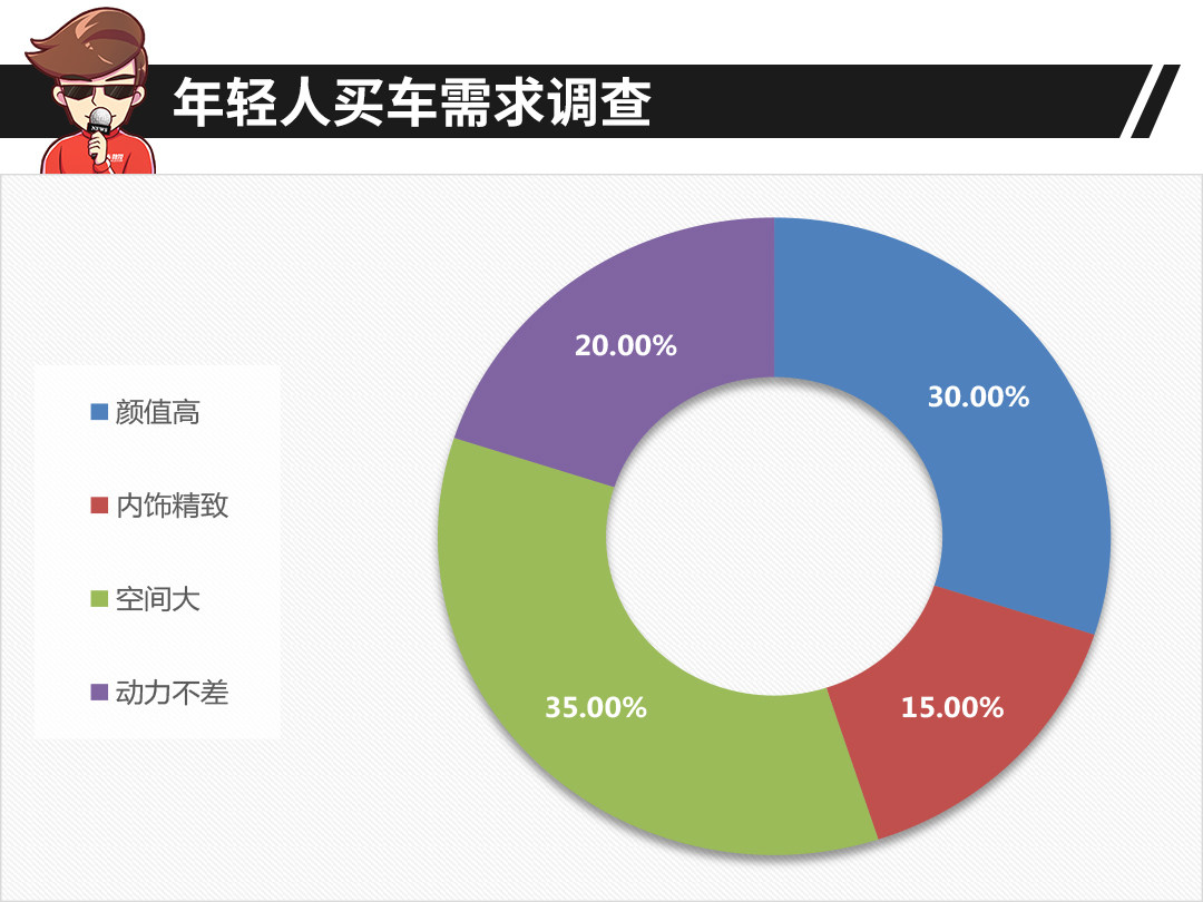 情理之中,编辑部的年轻一辈们希望自己的爱车有更好看的颜值;而让人感到意料之外的是他们竟然对“空间”要求甚高!询问原因,他们普遍都觉得现在买车不易,还是得考虑到以后多口之家的生活,有个大空间总归是有备无患。