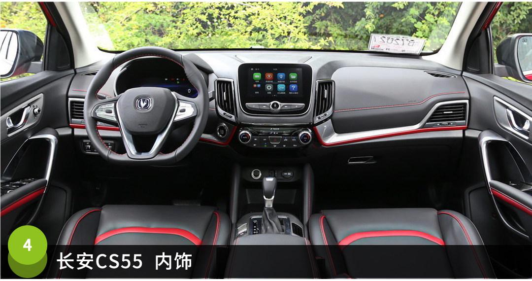 长安CS55的内饰则使用了较多折线去勾勒细节,想呈现出较强的“机械感”,这可能会让部分年轻人颇感新鲜。尤其是整体黑色调为主题,再增加红色元素作为点缀,整体营造出较为运动的氛围。