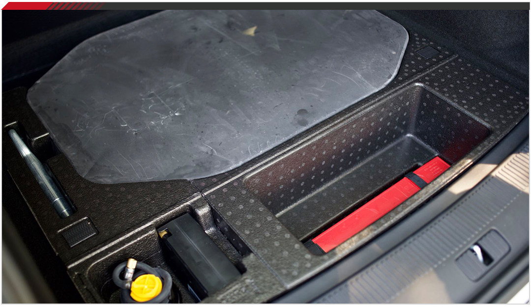 后备箱除了能用来放东西,还有盖板下面常见的一套的补胎工具和警示牌外。如果有个220V的插头就更好了。