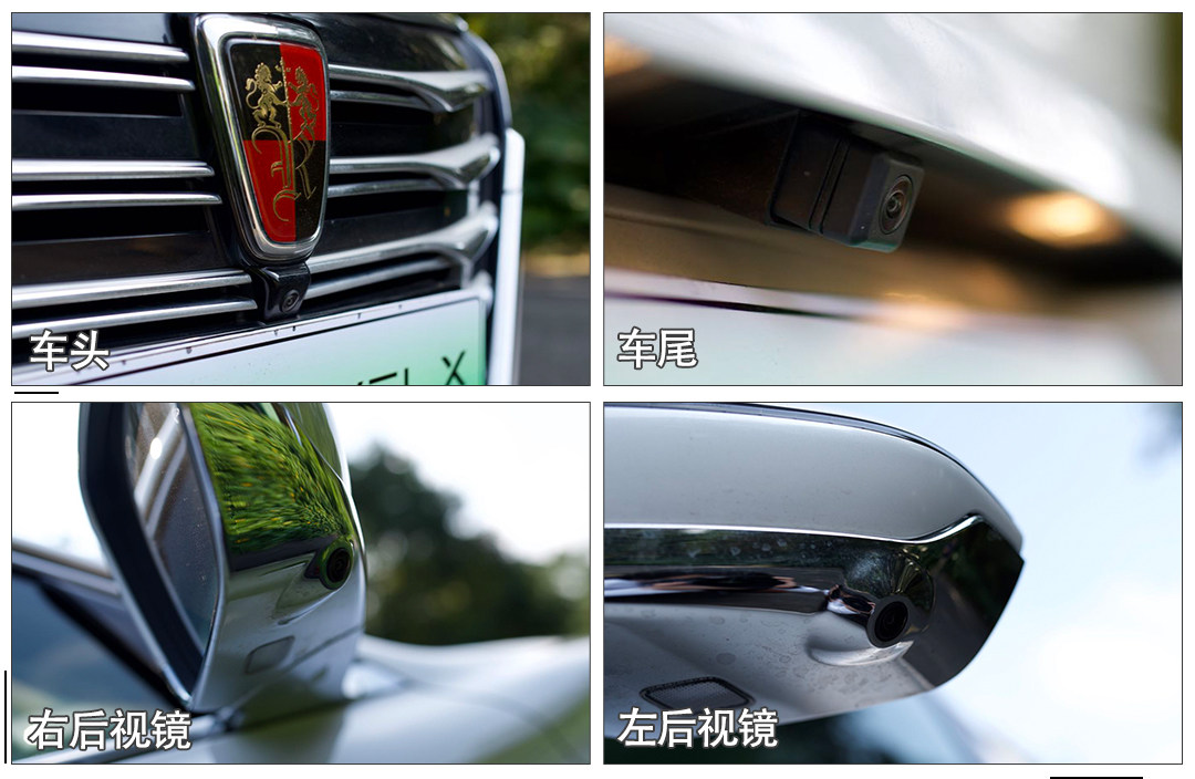 车头、后视镜下方、车尾也各有一个摄像头,组成360度环视摄像头。另外全车还有3个毫米波雷达与12个超声波雷达。