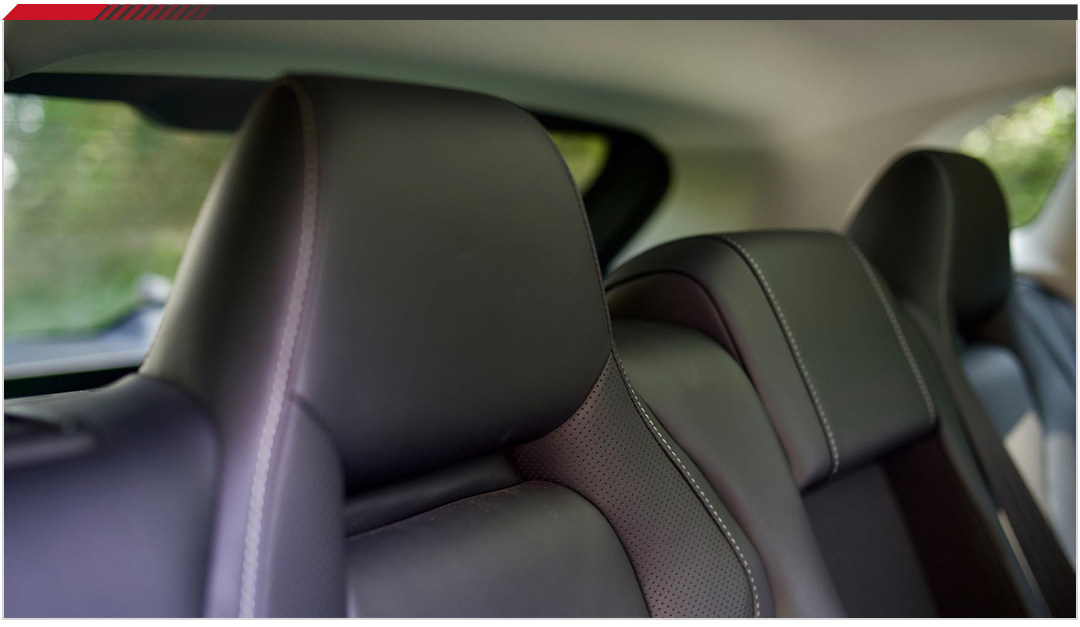后排的头枕造型很有赛车的感觉,但鱼与熊掌不可兼得,如果能够调节高度就更好了。