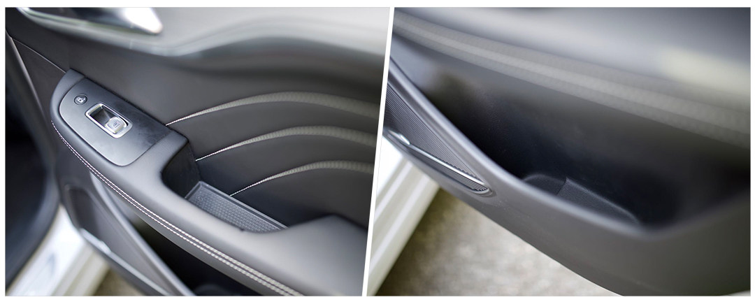 后排的储物空间基本都在门板位置,放瓶水什么的完全没问题。
