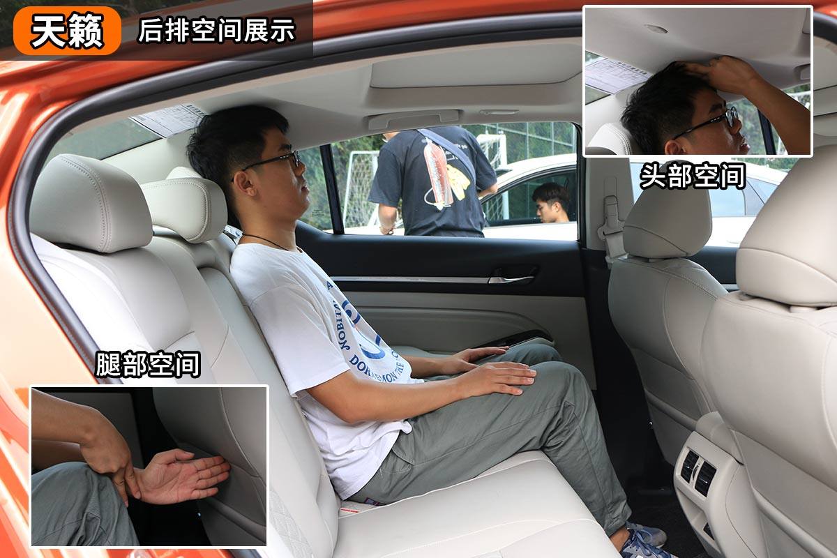 天籁的后排腿部空间是一掌+两指,比阿特兹再略小一点点。好在头部还有些空间,而且座椅舒适性最好,所以综合来说,天籁的后排绝不算差。更何况,天籁空间太大,天籁·公爵还怎么卖?
