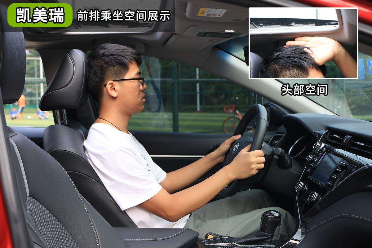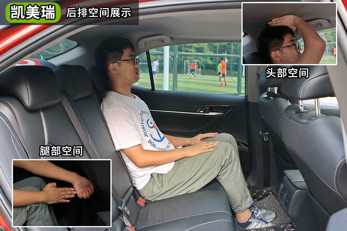 凯美瑞的后排乘坐空间比雅阁稍小一点,腿部刚好是一拳+一掌的空间。不过凯美瑞后排头部空间比雅阁的多了一指。